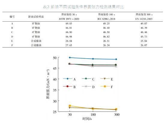 界面張力是反映變壓器油精制過程中潔凈程度的指標,并與油品的老化程度密切相關。國內外檢測變壓器油界面張力方法的主要區別在于界面形成后的保持時間不同。