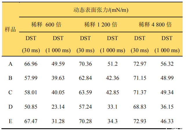 硝磺草酮懸浮劑制劑不同稀釋倍數的動態表面張力測定結果