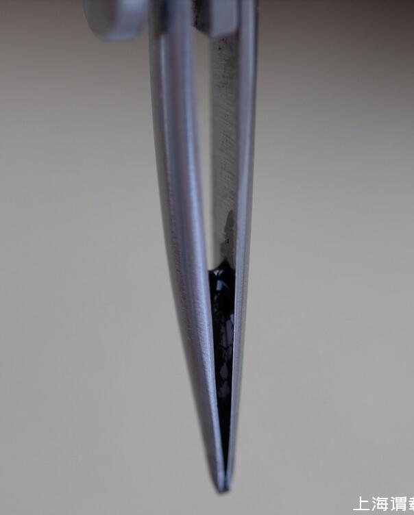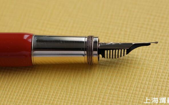 比較簡單的方法是拿小刀片調整中縫的開縫大小,和筆尖與筆舌間的距離,使更多的墨水能夠到達銥粒這邊,靠重力也能克服最后內凹的這點距離。這一步驟俗稱“刀尖”。只要不刮花金屬鍍層,基本上整個過程還是可逆的,就算一次下來效果不滿意也有進一步調整的余地。比如刀得太寬了,還能捏一捏再讓他緊一點。注意這里我們并不是要把中縫一味地開大,而是調整到合適的寬度,因為太寬墨水還是會留在中縫里,太窄又無法順利地從筆舌那邊引過來。