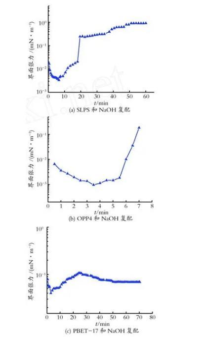 圖2 SLPS,OPP4和PBET-17與NaOH復配-樁西原油體系油-水動態界面張力