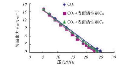 圖4表面活性劑對(duì)CO2與大慶原油混相壓力的影響