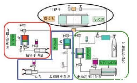 潤濕性及界面張力儀主要包括常溫常壓型、高溫型、超高溫型、便攜型,其中高溫高壓型潤濕性及界面張力儀能夠真實(shí)模擬油藏條件測(cè)量接觸角和界面張力。為了擴(kuò)展高溫高壓潤濕性及界面張力儀可以測(cè)量二氧化碳與原油最小混相壓力功能,且可以使常溫凝固的稠油等樣品,實(shí)現(xiàn)順利進(jìn)樣測(cè)量和測(cè)量,需要對(duì)現(xiàn)有設(shè)備進(jìn)行改造。通過增加高溫高壓氣體進(jìn)樣系統(tǒng),改進(jìn)原有油相、水相進(jìn)樣系統(tǒng),使其功能得到擴(kuò)展。