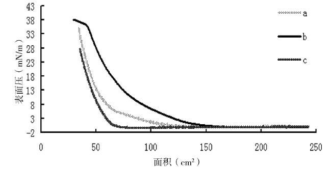 圖2 DEAE-瓊脂糖LB膜的表面壓-面積曲線(0.5 mg/mL,300μL)