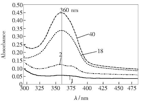 LB膜是在芬蘭生產的KSV2000單槽制膜系統上制備而成的,制膜的亞相為20℃二次蒸餾去離子水。將化合物以氯仿為溶劑配置成1.023×10-4mol/L的溶液,用微量注射器鋪展到亞相表面上。壓膜速度為5 mm/min,在15 mN/m恒定表面壓下采用水平附著法制備X型LB膜,基板為經疏水性處理的直徑為15 mm的石英玻璃。吸收譜及穩(wěn)態(tài)熒光譜的測量分別在日立U-3310型紫外-可見光譜儀和英國Edinburgh Instruments(EI)公司生產的FLS920型熒光光譜儀上完成,熒光光譜的激發(fā)光源為450 W氙燈。