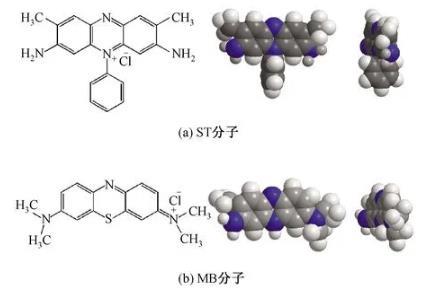 圖2 ST和MB染料分子結構圖及空間模型
