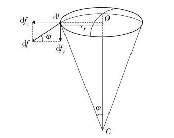 將微元dl所受表面張力分解為dfx和dfy,由于所有微元受力的水平方向dfx相抵消,而dfy方向相同.由幾何關(guān)系: