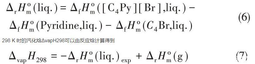 這些數(shù)據(jù)與Kabo等[40]使用Knudsen滲出法獲得的數(shù)據(jù)非常一致,但低于Santos等[43]使用微量熱法測量的蒸發(fā)熱。總而言之,他們認(rèn)為離子液體以離子對的形式蒸發(fā),而汽化熱主要取決于液相和氣相離子對之間的庫侖相互作用。