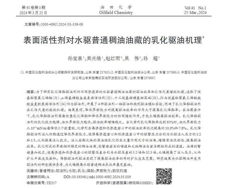 研究結(jié)果為水驅(qū)稠油開發(fā)用驅(qū)油劑的研發(fā)提供參考,為大幅提高水驅(qū)普通稠油采收率奠定基礎(chǔ)。