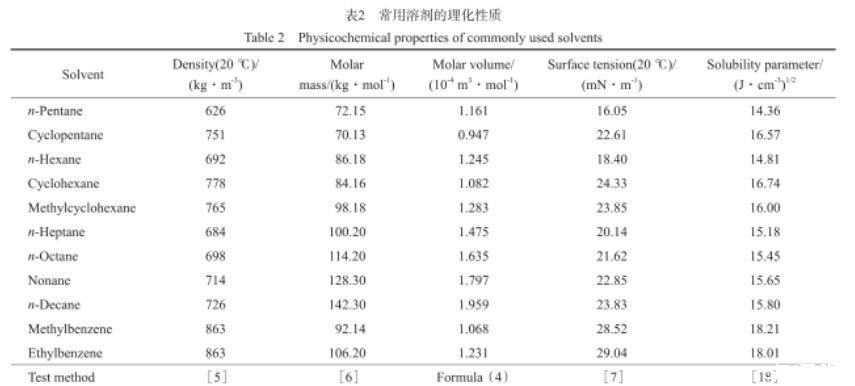 常用溶劑的理化性質(zhì)見表2。