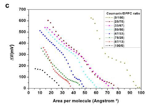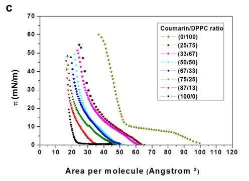 香豆素和磷脂混合物單分子層膜中的分子相互作用的界面性質——結果和討論