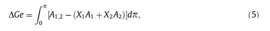 為了分析熱力學特性,我們計算了 ΔGe 和 ΔGmix(Baldyga 和 Dluhy,1998;DynarowiczLatka 等,2001;Maget-Dana,1999)如下: