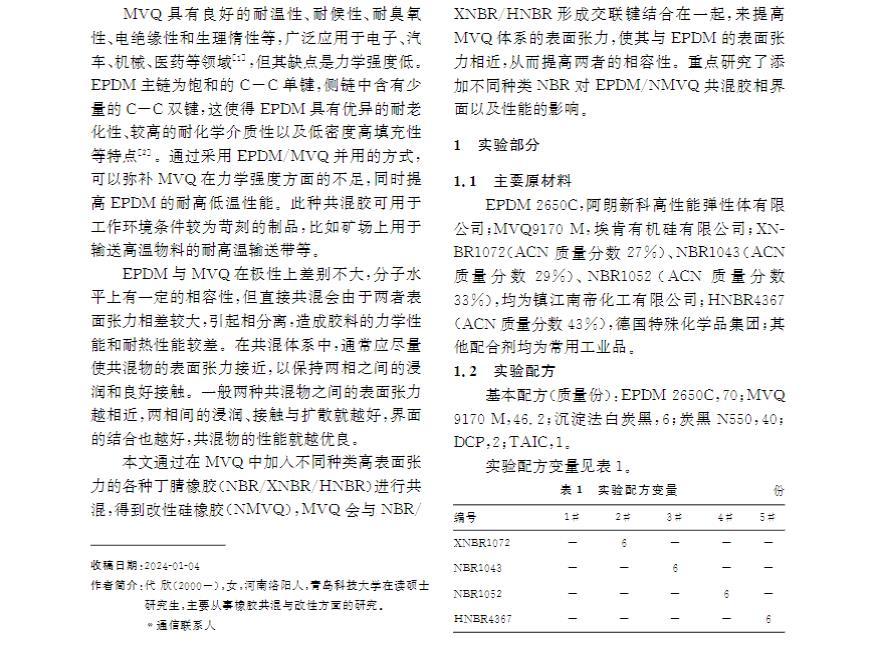 調(diào)控NMVQ相表面張力對(duì)EPDM/NMVQ共混膠性能的影響