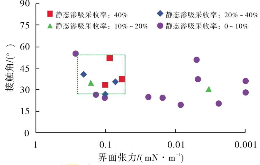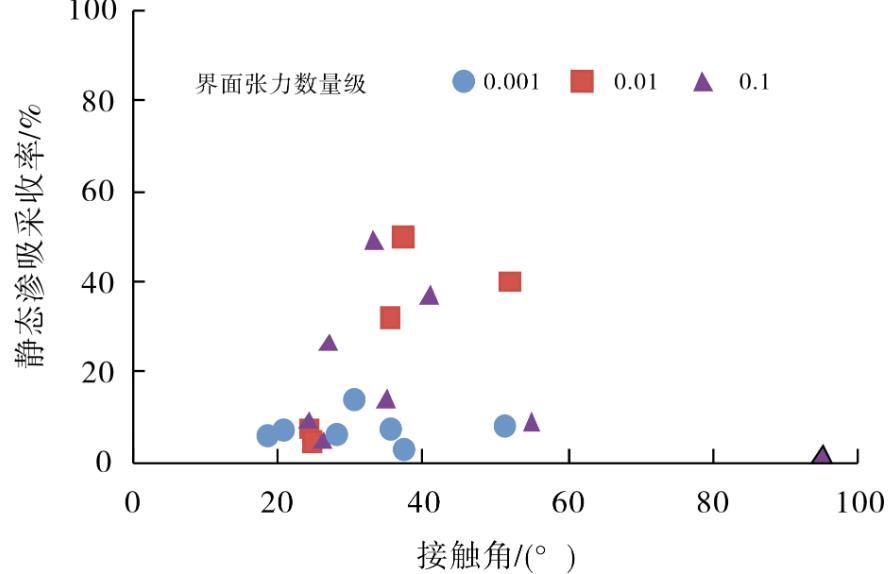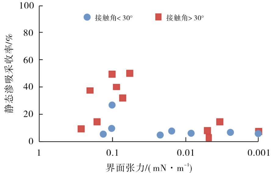 圖3界面張力-潤濕性-靜態(tài)滲吸采收率關(guān)系
