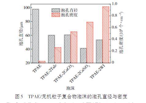圖5 TPAE/無機粒子復合物泡沫的泡孔直徑與密度