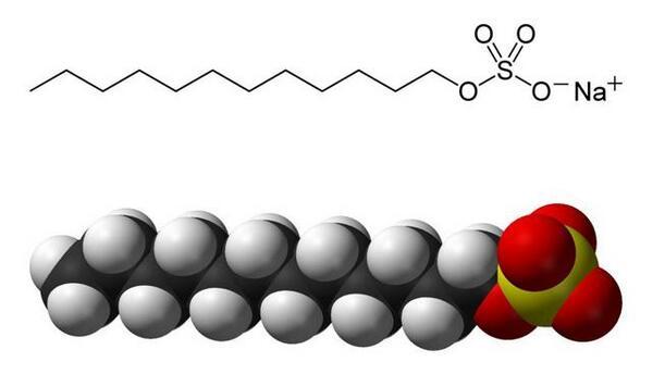 十二烷基硫酸鈉(看起來像毛毛蟲),表面活性劑的一種,被廣泛用于洗衣粉中|來源:Wikipedia
