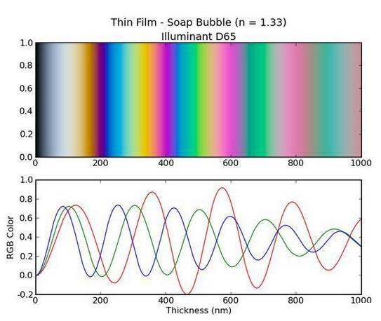 泡泡膜顏色與厚度的關系|來源:soapbubble.dk