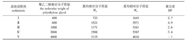 表1 5種表面活性劑的相對分子質(zhì)量及聚合度(DP)