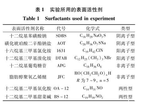 在查閱文獻的基礎上初選了8種常用且經濟的表面活性劑(表1)。
