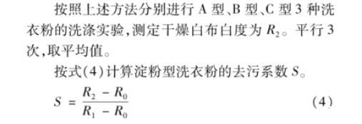 按式(4)計算淀粉型洗衣粉的去污系數S。