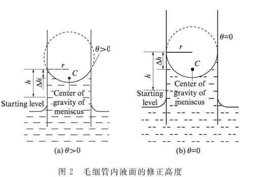 圖2毛細管內液面的修正高度
