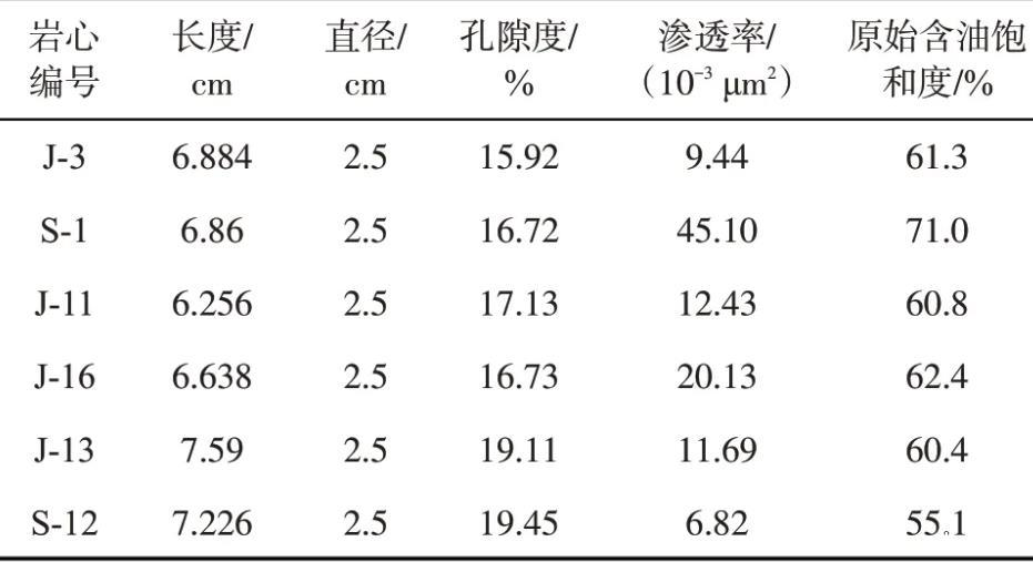 表2巖心物性參數