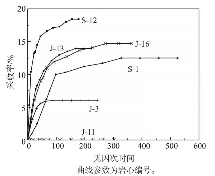 圖5低張力納米流體滲吸體系在大慶低滲天然巖心中的采收率