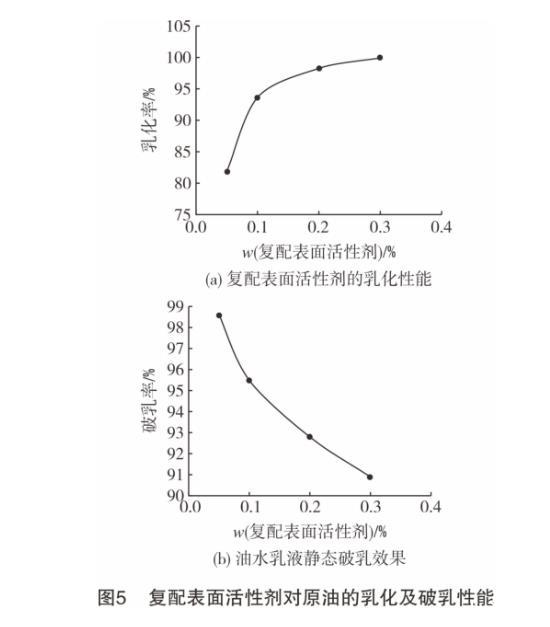 2.5復(fù)配表面活性劑對原油的乳化及破乳性能