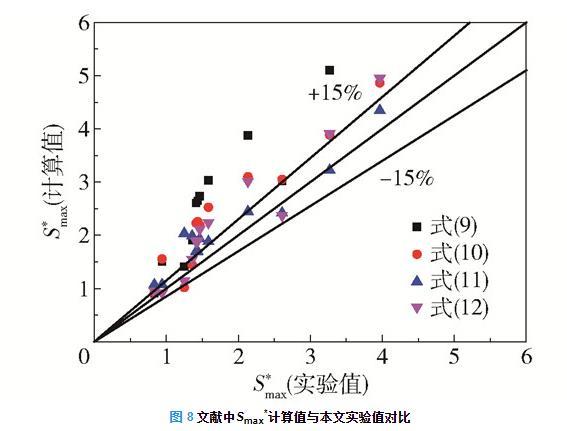 圖9實驗值與式(15)Smax*計算值的對比
