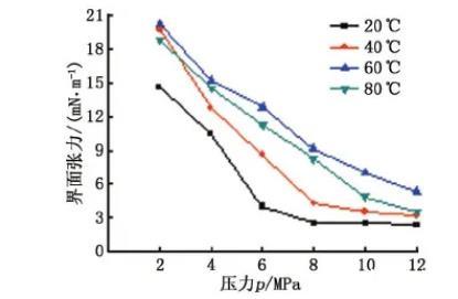 不同溫度和壓力對AOT穩定CO2乳液的界面張力影響(二)