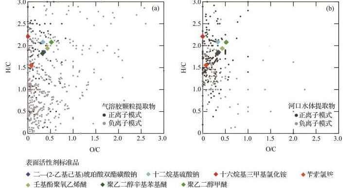 圖1氣溶膠顆粒(a)和河口水體(b)表面活性劑類有機(jī)物的Van Krevelen圖