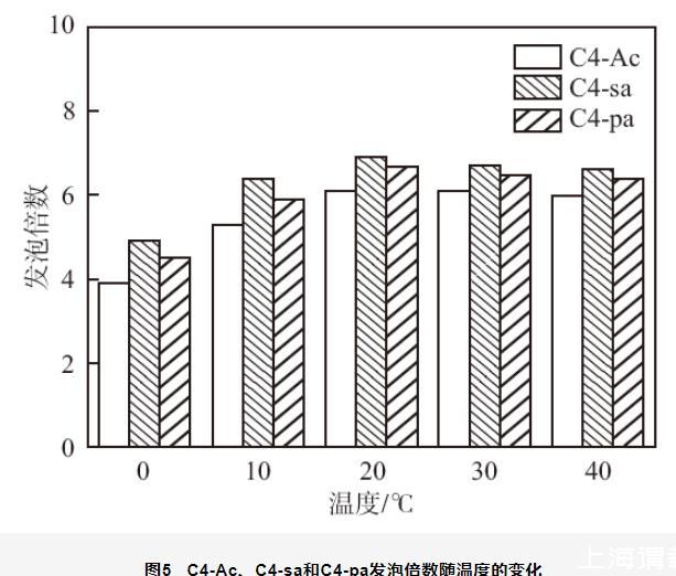 圖5 C4-Ac、C4-sa和C4-pa發(fā)泡倍數(shù)隨溫度的變化