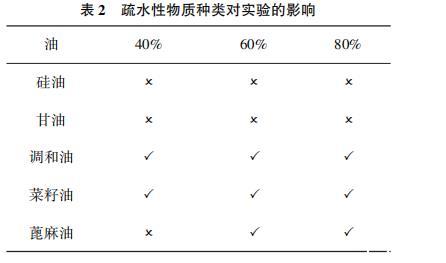 表2疏水性物質種類對實驗的影響