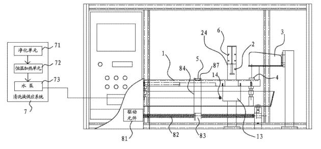 [0018]在一些實施方式中,還包括清洗液供應系統,清洗液供應系統包括凈化單元、恒溫加熱單元和泵體。清洗液通過凈化單元凈化并通過恒溫加熱單元進行加熱后,再經由泵體供應到清洗槽當中。其有益效果是,先通過凈化單元,可以預先清除掉清洗液當中可能存在的油。另外,通過恒溫加熱單元可以將清洗液加熱到一定的溫度。因為溫熱狀態的清洗液,可以實現更加的油脂清除能力,從而可以將樣品上的油更方便且更完全的清洗下來。