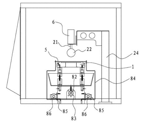 [0013]其有益效果是,在使用的時候,可以在清洗槽當中放滿清洗液,清洗液通常采用清水即可,或者也可以采用其它可將油脂從樣品當中洗下來的液體。通過樣品固定單元可以將板材樣品固定住,然后做升降運動,即將樣品向清洗液當中做若干次的浸沒操作,從而將樣品當中的油清洗下來。