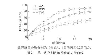 圖2單一乳化劑乳液消化動力學(xué)曲線