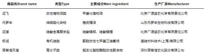 表1供試助劑產品信息