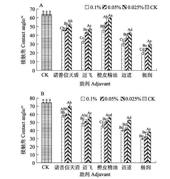 圖3不同助劑對藥液在杧果葉片接觸角的影響