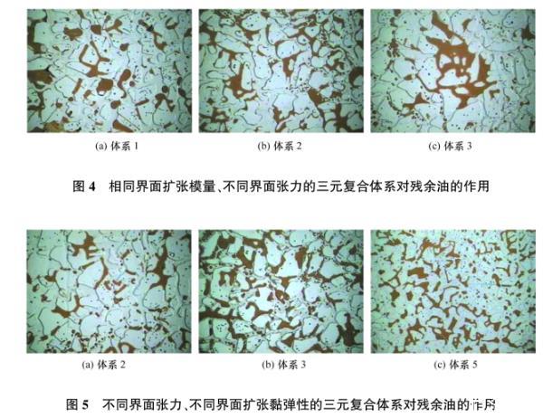 3.1.3界面張力、界面擴張模量均不同的三元復合體系對殘余油的作用