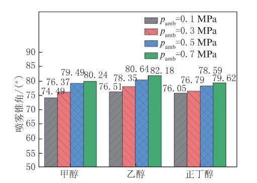 圖3環境壓力對醇類燃料噴霧錐角的影響