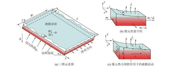 為增強(qiáng)數(shù)學(xué)模型的實(shí)用性,在構(gòu)建傾斜加熱壁面上液膜數(shù)值模擬之前,提出以下基本假設(shè)。