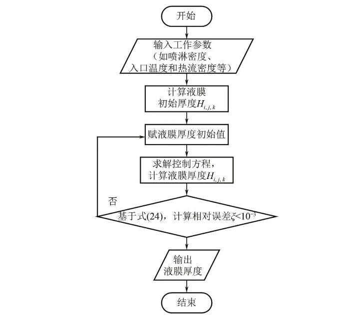 式(1)將作為本文模型計(jì)算的迭代初值。之后,Kapitza首次對傾斜平板上流動液膜的流體動力學(xué)不穩(wěn)定性進(jìn)行了研究,對流動液膜的流動不穩(wěn)定性和破裂有了初步的認(rèn)識。隨著實(shí)驗(yàn)方法和測量技術(shù)的不斷進(jìn)步,研究人員通過更高效的實(shí)驗(yàn)和模擬方法對流動液膜進(jìn)行了深入和廣泛的研究,深化了對液膜流動模式、流動特性和蒸發(fā)等內(nèi)在機(jī)制的理解,也為相關(guān)的工業(yè)應(yīng)用提供了重要的科學(xué)依據(jù)。