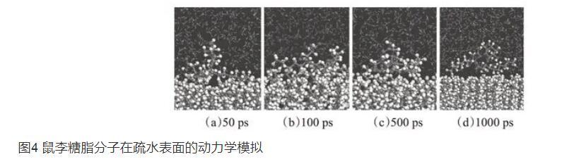 圖4鼠李糖脂分子在疏水表面的動(dòng)力學(xué)模擬