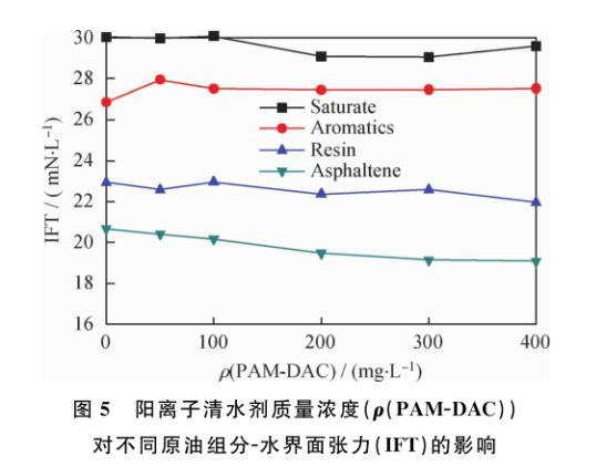 圖5陽(yáng)離子清水劑質(zhì)量濃度(ρ(PAM-DAC))對(duì)不同原油組分-水界面張力(IFT)的影響