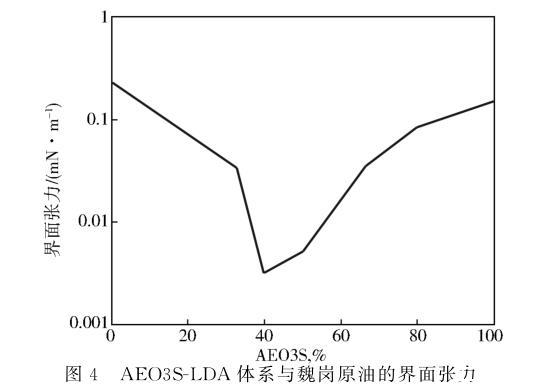 圖4 AEO3S-LDA體系與魏崗原油的界面張力