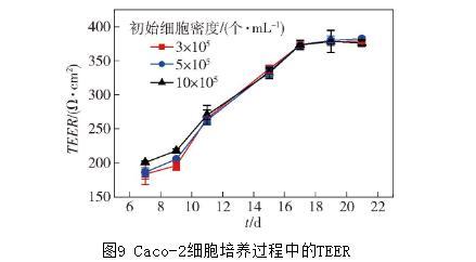 圖9 Caco-2細(xì)胞培養(yǎng)過(guò)程中的TEER