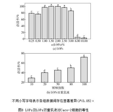 圖8 LOPs及LOPs雙重乳液對(duì)Caco-2細(xì)胞的毒性