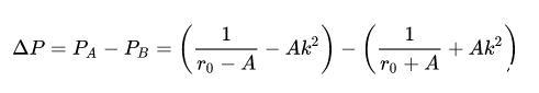 我們可以看到,在不同的地方,柱面的曲率都發生了變化,這種變化和表面張力一起,就導致了水柱當中不同地方內部壓力的變化。那么,我們如何判斷這種影響呢?我們說,如果A點(柱半徑縮小的地方)的壓力上升,B點壓力下降,那么: