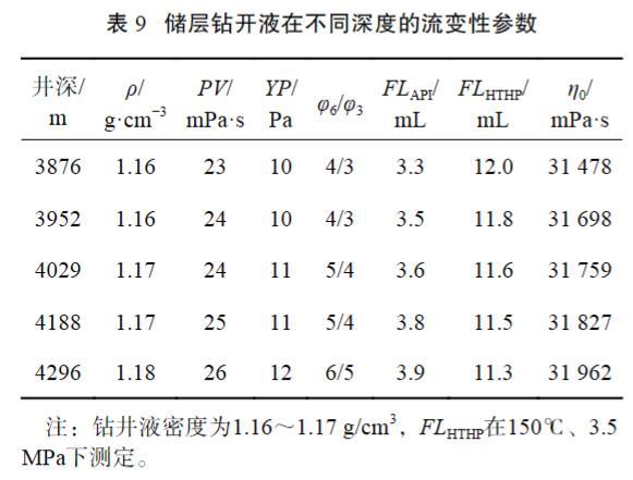 表9儲層鉆開液在不同深度的流變性參數(shù)