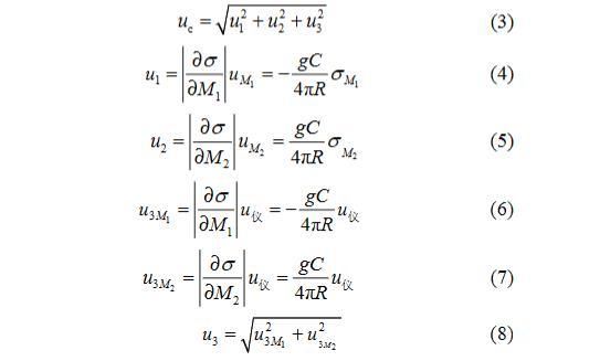 參照文獻,分析測量方法可知,在某一測量溫度工況點,對表面張力σ測量不確定度影響顯著的因素有:M1和M2的重復性測量引起的不確定度u1、u2;電子天平示值誤差引起的不確定度u3。