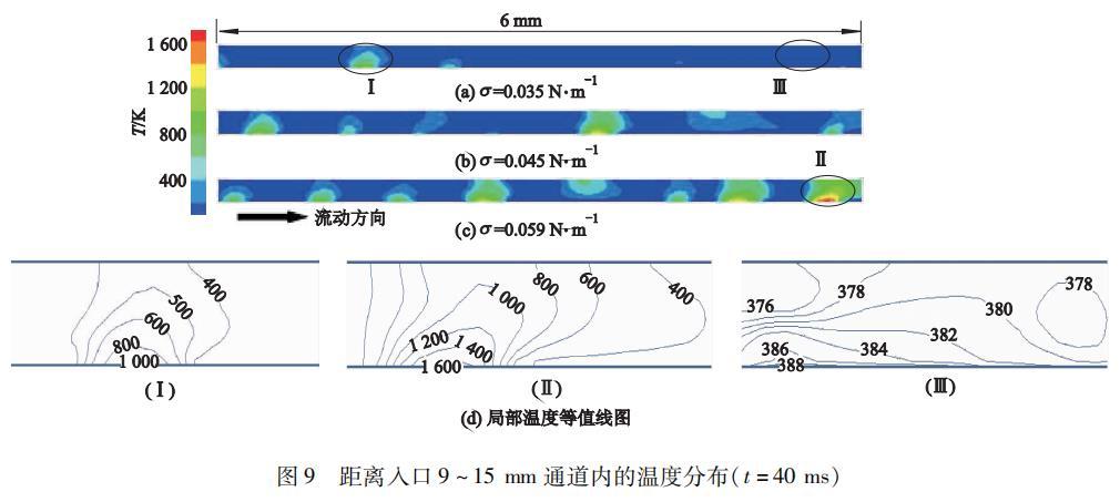 圖9距離入口9~15mm通道內的溫度分布(t=40 ms)